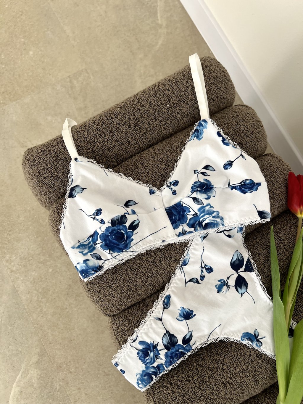 Doprajte si maximálny komfort a šetrnosť k pokožke s našim bavlneným setom s romantickou potlačou modrých ruží.